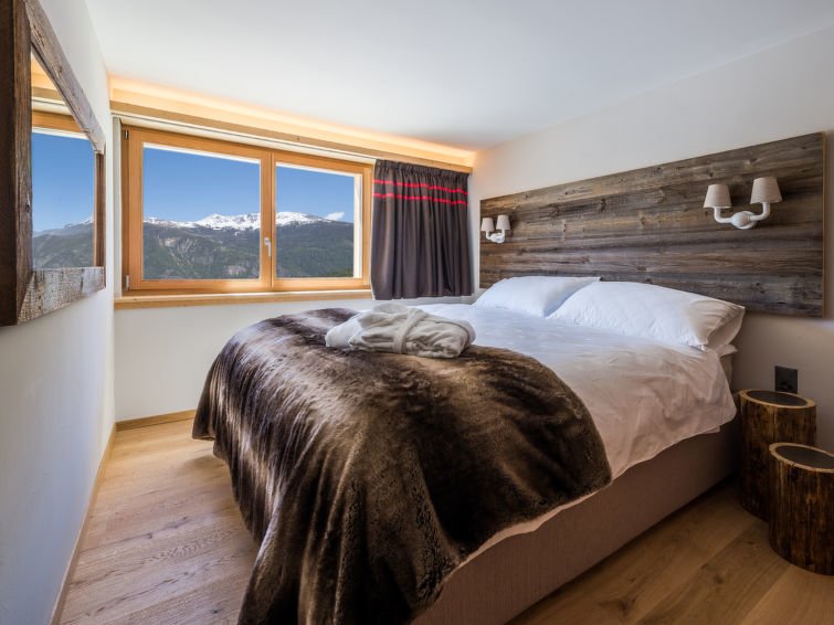 ”3 room duplex Swisspeak”, 3-huoneen huoneisto, 55 m2, 2 tasossa. Hyvällä maulla ja viihtyisästi sisustettu: olo/ruokailuhuone, ruokapöytä, TV, kansainvälisiä TV-kanavia ja litteänäyttö. 1 huone, 1 parisänky (180 cm, pituus 200 cm). Avoin keittiö (uuni, astianpesukone, 4 keraaminen keittotaso, kahvinkeitin). Suihku/WC. Lattialämmitys. Yläkerrassa: 1 huone, 1 vuode (90 cm, pituus 200 cm), 1 x 2 kerrossänky (90 cm, pituus 200 cm). Kylpy/WC. Lattialämmitys. Parkettilattiat. Käytettävissä: Internet (  Langaton LAN [WLAN]    , ilmainen). Huomioitavaa: 1 lemmikki/koira sallittu. Savuhälytin…. Lue lisää »