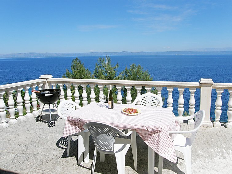3-huoneen talo, 65 m2, suunta pohjoiseen. Olo/ruokailuhuone, 22 m2, 1 vuodesohva (120 cm, pituus 200 cm), satelliitti TV ja ilmastointi. Uloskäynti terassille. 2 huonetta, kaikissa huoneissa, 1 kapea parisänky (160 cm, pituus 200 cm). Avoin keittiö (4 keittolevyä, uuni, pakastin). Suihku/WC, erillinen WC. Ilmastointilaite (lisämaksu). Terassi 30 m2. Terassikalusteita. Ihastuttava näkymä merelle. Käytettävissä: Internet ( Langaton LAN [WLAN] , ilmainen). 1 pieni lemmikki/koira sallittu…. Lue lisää »