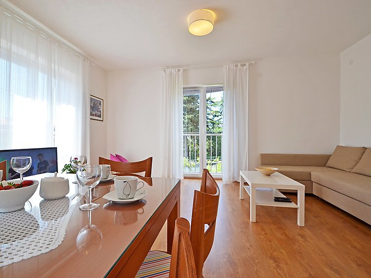 3-huoneen huoneisto, 80 m2, 1. kerroksessa, suunta lounaaseen. Olo/ruokailuhuone, 30 m2, satelliitti TV (litteänäyttö), ilmastointi. Uloskäynti terassille. 1 huone, 1 kapea parisänky (140 cm, pituus 200 cm), pienoiskeittiö ja suihku/WC. 1 huone, 1 vuode (90 cm, pituus 200 cm), 1 parisänky (2 x 80 cm, pituus 200 cm), suihku/WC. Avoin keittiö (uuni, astianpesukone, 3 keraaminen keittotaso, pakastin). Terassi 12 m2, katettu. Terassikalusteita. Käytettävissä: lastensänky (lisämaksu). Internet ( Langaton LAN [WLAN] , ilmainen)…. Lue lisää »