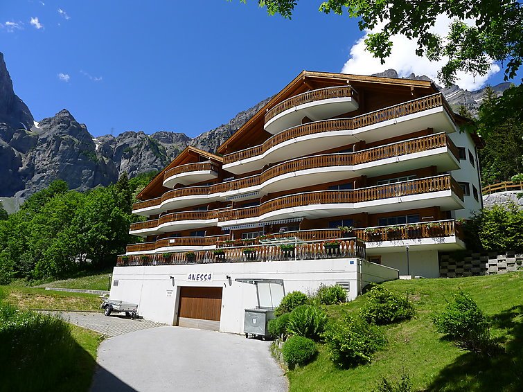 3-huoneen huoneisto, 90 m2, 3. kerroksessa. Mukavasti sisustettu: olo/ruokailuhuone, ruokapöytä ja kaapeli TV (litteänäyttö), stereosoitin ja DVD. Uloskäynti parvekkeelle, suunta etelään ja suunta länteen. 1 kahden hengen huone, 1 kapea parisänky (1 x 180 cm, pituus 200 cm), kaapeli TV ja DVD. 1 huone, 2 vuodetta (80 cm, pituus 200 cm), kaapeli TV ja DVD. Avoin keittiö (uuni, astianpesukone, 4 keraaminen keittotaso, mikroaaltouuni, kahvinkeitin). Kylpy/WC, suihku/WC. Parveke 11 m2. Parvekekalusteita. Erittäin kaunis näkymä vuorille ja paikkakunnalle. Käytettävissä: hiustenkuivaaja. Pysäköintipaikka n:o 3.1 (katettu). Huomioitavaa: savuton huoneisto…. Lue lisää »