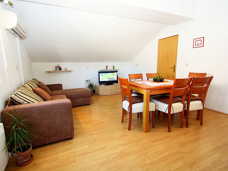 3-huoneen huoneisto, 80 m2, 2. kerroksessa, suunta pohjoiseen. Olo/ruokailuhuone, 25 m2, 1 vuodesohva (120 cm, pituus 200 cm), satelliitti TV (litteänäyttö), ilmastointi. Uloskäynti parvekkeelle. 1 huone, 1 kapea parisänky (160 cm, pituus 200 cm). 1 huone, 2 vuodetta (80 cm, pituus 200 cm). Avoin keittiö (4 keittolevyä, uuni). Suihku/WC. Parveke 8 m2. Parvekekalusteita. Käytettävissä: pesukone, lastensänky. Internet ( Langaton LAN [WLAN] , ilmainen). 1 lemmikki/koira sallittu…. Lue lisää »