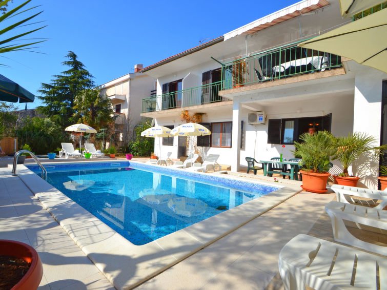 3-huoneen huoneisto, 62 m2, sisääntulokerroksessa, suunta etelään. Olo/ruokailuhuone, 24 m2, satelliitti TV (litteänäyttö), ilmastointi. Uloskäynti terassille. 1 huone, 1 vuodesohva kahdelle (140 cm, pituus 195 cm), 1 kapea parisänky (160 cm, pituus 200 cm). 1 huone, 1 kapea parisänky (160 cm, pituus 200 cm). Avoin keittiö (4 keittolevyä, uuni, mikroaaltouuni, pakastin, kahvinkeitin). Suihku/WC. Terassi 5 m2, katettu. Terassikalusteita. Näkymä uima-altaalle. Käytettävissä: pesukone. Internet ( Langaton LAN [WLAN] , ilmainen)…. Lue lisää »