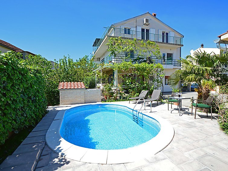2-huoneen huoneisto, 45 m2, 1. kerroksessa, suunta etelään. Olo/ruokailuhuone, 1 vuodesohva kahdelle (170 cm, pituus 190 cm), satelliitti TV ja ilmastointi. Uloskäynti terassille. 1 huone, 1 kapea parisänky (160 cm, pituus 200 cm). Avoin keittiö (4 keittolevyä, mikroaaltouuni). Suihku/WC. Terassi 6 m2, katettu. Terassikalusteita. Käytettävissä: pesukone. Internet ( Langaton LAN [WLAN] , ilmainen). 1 lemmikki/koira sallittu. Terassilta näkymä valmistumattomalle rakennustyömaalle…. Lue lisää »