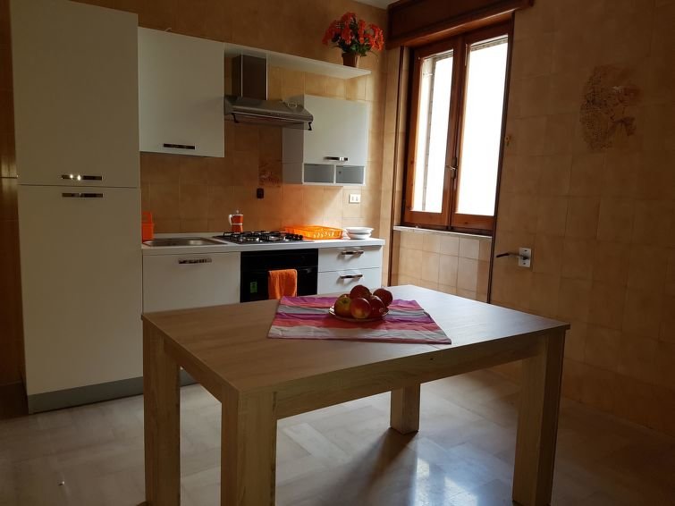 5-room apartment ”Appartamento ampio Lido San Giovann”, for 8 people, 130 m2, on the upper floor, comfortable and modern furnishings. Living/dining room with local TV, dining-table and dinette. Smoking allowed. Sleeping room with 1 double bed. Sleeping room with 1 double bed. Sleeping room with 2 single beds. Sleeping room with 2 single beds. Kitchen-/living room with 4 hot plates, dining table, dinette, fridge and deep freezer. Shower/WC, bidet and separate WC. Balcony 40 m2, terrace furniture…. Lue lisää »