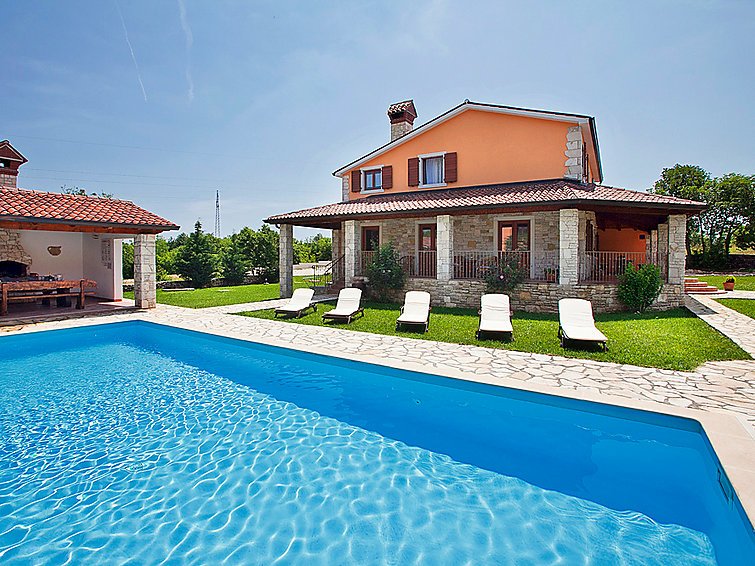 6-huoneen huvila, 300 m2, 3 tasossa, mukavasti ja hyvällä maulla sisustettu: olo/ruokailuhuone, 70 m2, 1 vuodesohva, avotakka, satelliitti TV, DVD ja ilmastointi. Uloskäynti terassille. 1 huone, 1 kapea parisänky (160 cm, pituus 200 cm), suihku/bidet/WC. Keittiö (5 keittolevyä, uuni, astianpesukone, mikroaaltouuni, pakastin). Erillinen WC. Yläkerrassa: 1 huone, 1 kapea parisänky (180 cm, pituus 200 cm), kylpy/bidet/WC, poreamme ja ilmastointi. 1 huone, 3 vuodetta (90 cm, pituus 200 cm), suihku/bidet/WC, satelliitti TV ja ilmastointi. Iso terassi 50 m2, katettu. Terassikalusteita, lepotuoleja. Näkymä uima-altaalle, puutarhaan ja metsään. Käytettävissä: pesukone, puhelin, lastensänky. Internet ( DSL/LAN). Enintään 2 pientä lemmikkiä/koiraa sallittu…. Lue lisää »