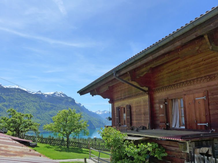 3-huoneen huoneisto, 70 m2, kattokerroksessa. Osittain viistot katot, maalaistyylisesti ja viihtyisästi sisustettu: iso olo/ruokailuhuone, kattoikkuna, takkakamiina, ruokailunurkkaus, satelliitti TV ja radio. Uloskäynti parvekkeelle. 1 huone 16 m2, 1 parisänky (2 x 90 cm, pituus 200 cm). 1 kahden hengen huone 13 m2, 1 parisänky (2 x 90 cm, pituus 200 cm). Avoin keittiö (4 keittolevyä, uuni, mikroaaltouuni, kahvinkeitin, raclettegrilli fonduesetti (juusto)), ruokapöytä. Kylpy/WC. Lämminvesivaraaja (200 litraa). Parveke 10 m2, etelään. Parvekekalusteita. Ihastuttava panoraamanäkymä järvelle, vuorille ja laaksoon. Käytettävissä: hiustenkuivaaja, puut (ilmainen). Internet ( Langaton LAN [WLAN] , ilmainen). Pysäköintipaikka talon vieressä. Huomioitavaa: savuton huoneisto…. Lue lisää »