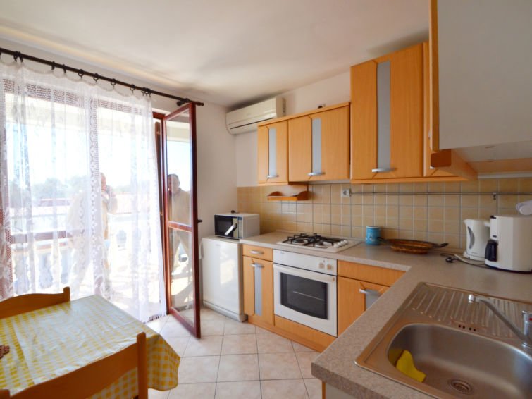 6-huoneen huoneisto, 80 m2, 2. kerroksessa, suunta lounaaseen. Olo/ruokailuhuone, 10 m2, pienoiskeittiö ja TV (litteänäyttö), ilmastointi. Uloskäynti terassille. Läpikulkuhuone, 1 parisänky (2 x 80 cm, pituus 200 cm), suihku/WC. 1 huone, 2 vuodetta (80 cm, pituus 190 cm). Olo/ruokailuhuone, 10 m2, satelliitti TV (litteänäyttö), ilmastointi. Uloskäynti terassille. 1 huone, 1 parisänky (2 x 80 cm, pituus 200 cm). 1 huone, 3 vuodetta (90 cm, pituus 190 cm). Avoin keittiö (4 keittolevyä, uuni, mikroaaltouuni, kahvinkeitin). Suihku/WC. Ilmastointilaite (lisämaksu). Terassi 17 m2, katettu, terassi 12 m2, katettu. Terassikalusteita. Vähäinen näkymä merelle. Käytettävissä: Internet ( Langaton LAN [WLAN] , ilmainen). Huoneisto koostuu kahdesta huoneistosta, jotka vuokrataan yhdessä…. Lue lisää »