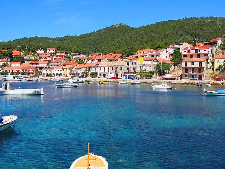 2-huoneen huoneisto, 40 m2, 1. kerroksessa, suunta etelään. 1 huone, 1 parisänky (2 x 90 cm, pituus 200 cm). 1 huone, 1 kapea parisänky (160 cm, pituus 200 cm). Ruokailuhuone, satelliitti TV ja ilmastointi. Avoin keittiö (4 keittolevyä, uuni, pakastin). Suihku/WC. Näkymä merelle. 1 pieni lemmikki/koira sallittu…. Lue lisää »