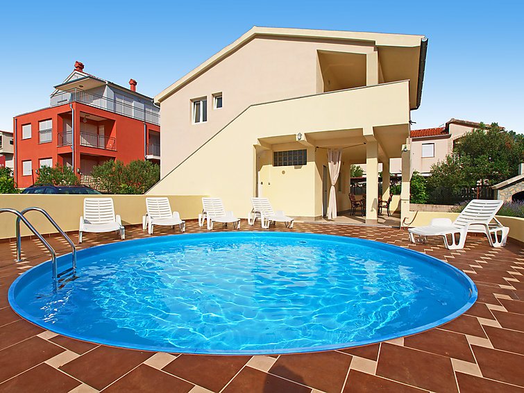 6-huoneen talo, 90 m2, 2 tasossa. Kauniisti ja uudenaikaisesti sisustettu: olo/ruokailuhuone, 22 m2, satelliitti TV, DVD ja ilmastointi. Uloskäynti terassille. 1 huone, 1 kapea parisänky (160 cm, pituus 200 cm). 1 huone, 2 vuodetta (90 cm, pituus 200 cm). Avoin keittiö (4 keittolevyä, astianpesukone, mikroaaltouuni, pakastin). Suihku/WC. Yläkerrassa: (ulkoportaat) olo/ruokailuhuone, 22 m2, satelliitti TV ja ilmastointi. Uloskäynti terassille. 1 huone, 1 kapea parisänky (160 cm, pituus 200 cm). 1 huone, 2 vuodetta (90 cm, pituus 200 cm). Avoin keittiö (2 keittolevyä, mikroaaltouuni). Suihku/WC. 2 terassia 22 m2, katettu, etelään. Terassikalusteita, lepotuoleja. Vähäinen näkymä merelle. Käytettävissä: Internet ( Langaton LAN [WLAN] , ilmainen)…. Lue lisää »