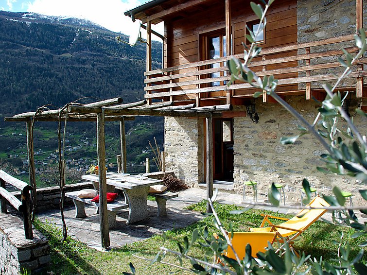 ”Cà Sulìva”, 3-huoneen talo 2 tasossa. Avara ja vaalea, osittain viistot katot, kauniisti ja viihtyisästi sisustettu: avoin olo/ruokailuhuone, avotakka, ruokapöytä, satelliitti TV, litteänäyttö, radio ja sähkölämmitys. Uloskäynti terassille, pergola. Avoin keittiö (4 keraaminen keittotaso, mikroaaltouuni, raclettegrilli fonduesetti (juusto)). Uloskäynti terassille, pergola. Yläkerrassa: 1 huone, 2 vuodetta (90 cm, pituus 200 cm). Uloskäynti parvekkeelle. 1 huone, 2 vuodetta (90 cm, pituus 200 cm). Uloskäynti parvekkeelle. Suihku/WC. Parveke, etelään, iso puutarhaistumapaikka, nurmikko. Terassikalusteita, puutarhagrilli (liikuteltava), lepotuoleja (4), varasto. Ihastuttava panoraamanäkymä vuorille, laaksoon, maaseudulle ja paikkakunnalle. Käytettävissä: pesukone, silitysrauta, syöttötuoli, lastensänky alle 3 vuotiaalle (lisämaksu), puut (lisämaksu). Internet (  Langaton LAN [WLAN]    ). Pysäköintipaikka. Huomioitavaa: savuton talo. Enintään 2 pientä lemmikkiä/koiraa sallittu…. Lue lisää »