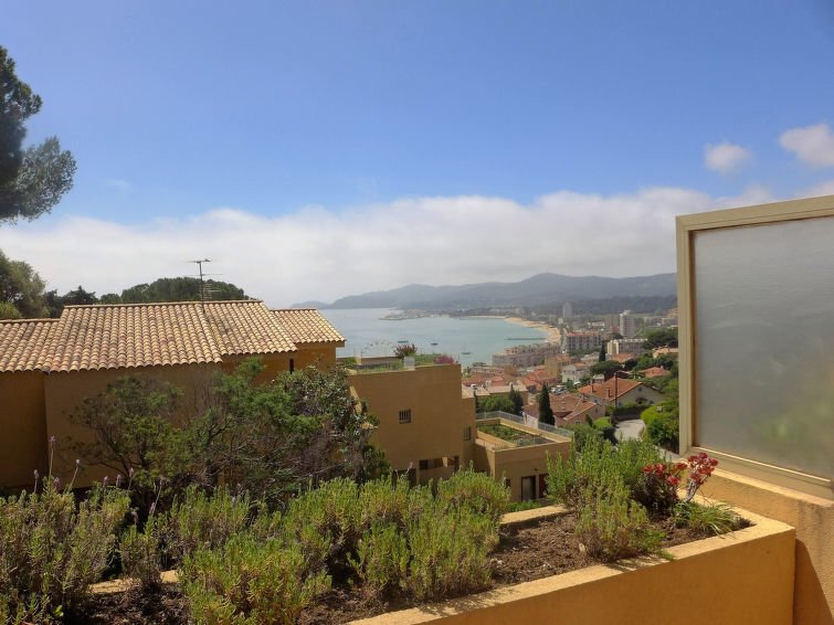 1-huoneen huoneisto, 28 m2, välitasolla. Mukavasti sisustettu: olohuone, 1 ransk. komerosänky (140 cm, pituus 190 cm), ruokapöytä ja litteänäyttö. Uloskäynti terassille. Keittiö (2 keittolevyä, pienoisuuni, mikroaaltouuni, kahvinkeitin). Kylpy/WC. Sähkölämmitys. Terassi 15 m2, etelään. Terassikalusteita. Käytettävissä: pesukone. Pysäköintipaikka n:o 23 (katettu). Huomioitavaa: enintään 1 pieni lemmikki/koira sallittu. TV vain FR…. Lue lisää »