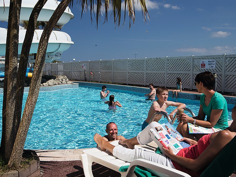 4-huoneen asuntovaunu, mukavasti sisustettu: olo/ruokailuhuone, 1 ulosvedettävä sänky (2 henk. 2 x 70 cm, pituus 183 cm), ruokapöytä, TV ja kaasulämmitin. 1 pieni huone, 1 kapea parisänky (140 cm, pituus 183 cm). 2 pientä lastenhuonetta, kaikissa huoneissa 2 vuodetta (70 cm, pituus 183 cm). Keittiönurkkaus (4 keittolevyä, uuni, mikroaaltouuni). Suihku/WC. Huomioitavaa: TV vain en…. Lue lisää »