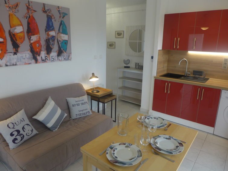 2-huoneen huoneisto, 24 m2, 3. kerroksessa, suunta länteen. Vaalea, erittäin käytännöllisesti sisustettu: olo/ruokailuhuone, 1 vuodesohva kahdelle (140 cm, pituus 190 cm), TV (litteänäyttö). Uloskäynti parvekkeelle. Alkovi, 1 vuode (90 cm, pituus 190 cm). Avoin keittiö (pienoisuuni, 2 keraaminen keittotaso, mikroaaltouuni, pakastin, kahvinkeitin). Suihku/WC. Sähkölämmitys. Parveke. Parvekekalusteita. Näkymä vuorille. Käytettävissä: pesukone, silitysrauta, hiustenkuivaaja. Huomioitavaa: ei hissiä…. Lue lisää »