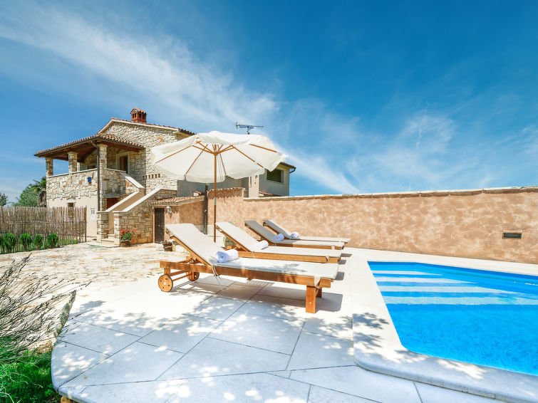 3-huoneen talo, 100 m2, 1. kerroksessa. Maalaistyylisesti sisustettu: olo/ruokailuhuone, avotakka ja satelliitti TV (litteänäyttö), ilmastointi. 1 huone, 1 kapea parisänky (160 cm, pituus 200 cm), ilmastointi. 1 huone, 2 vuodetta (80 cm, pituus 200 cm). Avoin keittiö (4 keittolevyä, astianpesukone, mikroaaltouuni, pakastin, kahvinkeitin). Kylpy/bidet/WC, suihku/WC, poreamme. Lepotuoleja. Näkymä uima-altaalle. Käytettävissä: lastensänky. Internet ( Langaton LAN [WLAN] , ilmainen)…. Lue lisää »