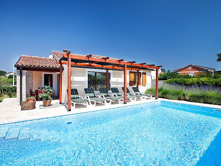 4-huoneen talo, 100 m2. Kauniisti sisustettu: olo/ruokailuhuone, satelliitti TV (litteänäyttö), DVD ja ilmastointi. Uloskäynti terassille, uima-altaalle. 2 huonetta, kaikissa huoneissa, 1 kapea parisänky (180 cm, pituus 200 cm), ilmastointi. 1 huone, 2 vuodetta (90 cm, pituus 200 cm), ilmastointi. Avoin keittiö (4 keittolevyä, uuni, astianpesukone, pakastin, kahvinkeitin). 2 suihkua/WC:tä. Terassi 8 m2, katettu. Terassikalusteita, lepotuoleja, varasto. Käytettävissä: silitysrauta. Internet ( Langaton LAN [WLAN] , ilmainen). Soveltuu perheille. 2 lemmikkiä/koiraa sallittu…. Lue lisää »