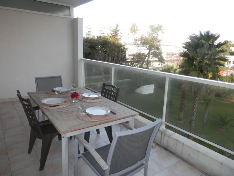 2-huoneen huoneisto, 45 m2, 2. kerroksessa. Kauniisti ja uudenaikaisesti sisustettu: olo/ruokailuhuone, kaapeli TV, radio, CD, DVD ja ilmastointi. Uloskäynti terassille. 1 huone, 1 kapea parisänky (160 cm), ilmastointi. Uloskäynti terassille. Avoin keittiö (4 keittolevyä, uuni, astianpesukone, mikroaaltouuni). Suihku/bidet/WC. Sähkölämmitys. Terassi 16 m2, katettu, luoteeseen. Terassikalusteita. Käytettävissä: pesukone. Autotalli n:o 28, korkeus 220 cm, leveys 220 cm. Huomioitavaa: TV vain FR…. Lue lisää »