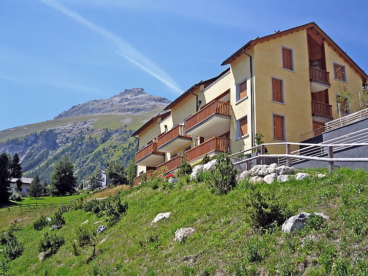 ”Chesa Sur Puoz E8”, 1-huoneen yksiö, 38 m2, sisääntulokerroksessa, suunta etelään. Mukavasti ja viihtyisästi sisustettu: pieni sisääntulo, suihku/bidet/WC. Olo/ruokailuhuone, 1 parisänky ja TV (litteänäyttö). Keittiönurkkaus (uuni, astianpesukone, 2 keraaminen keittotaso, kahvinkeitin). Lepotuoleja (2). Vähäinen näkymä vuorille. Autotalli n:o 10, korkeus 215 cm. Huomioitavaa: savuton huoneisto…. Lue lisää »