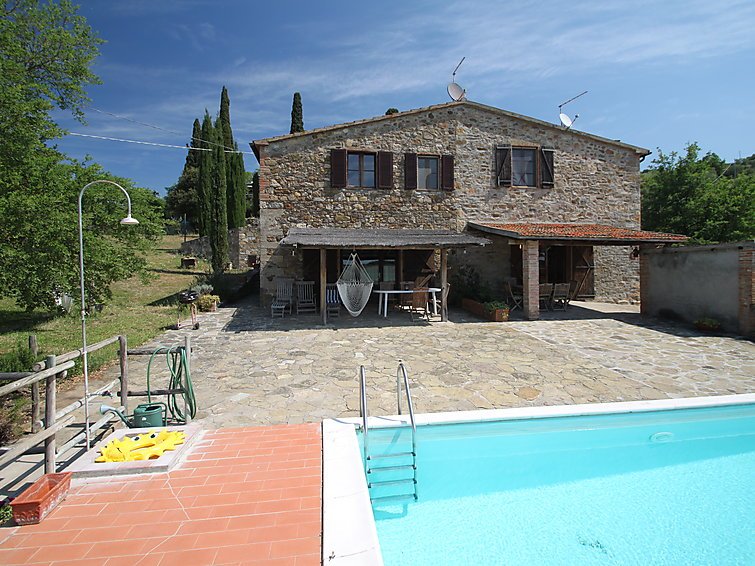 ”Cipresso”, 5-huoneen paritalohuoneisto, 100 m2, 2 tasossa, sisääntulokerroksessa. Täysin peruskorjattu, hyvällä maulla sisustettu: 1 kahden hengen huone. Olo/ruokailuhuone, ruokapöytä. Uloskäynti terassille, uima-altaalle. 1 huone, 2 vuodetta. Keittiönurkkaus (uuni, astianpesukone, pakastin, kahvinkeitin). Suihku/bidet/WC. Yläkerrassa: olohuone, panoraamaikkuna, 1 vuodesohva. 1 avoin kahden hengen huone. Suihku/bidet/WC. Lämmitys (lisämaksu). Iso terassi, lehtimaja. Terassikalusteita, puutarhagrilli (liikuteltava), lepotuoleja. Erittäin kaunis panoraamanäkymä maaseudulle. Käytettävissä: pesukone, lastensänky. Internet (  Langaton LAN [WLAN]    , ilmainen). IPod-telakointiasema. Yksityinen ulkotila, jonka tavoitat sisääntulokerroksesta ja toisesta kerroksesta…. Lue lisää »