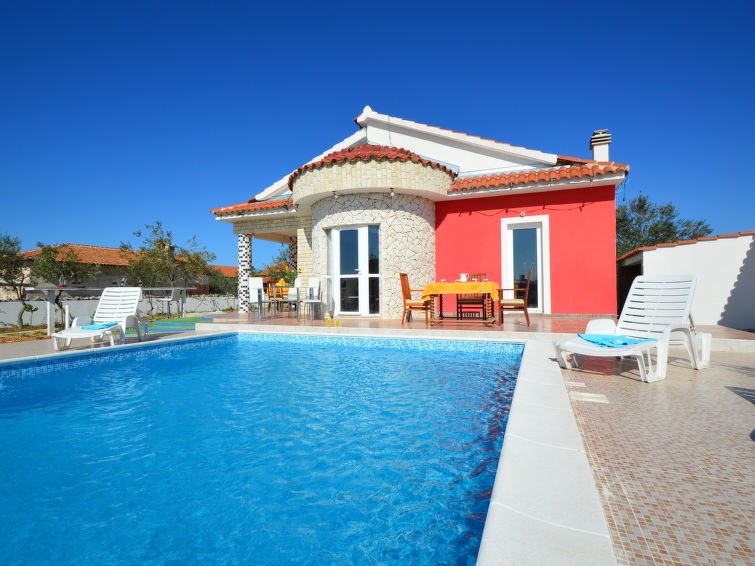 5-huoneen talo, 127 m2, suunta kaakkoon. Olo/ruokailuhuone, 47 m2, 1 vuodesohva (110 cm, pituus 200 cm), satelliitti TV (litteänäyttö), ilmastointi. Uloskäynti terassille. 1 huone, 1 parisänky (2 x 90 cm, pituus 200 cm). 1 huone, 1 kapea parisänky (200 cm, pituus 190 cm), suihku/WC. 1 huone, 1 kapea parisänky (140 cm, pituus 200 cm), suihku/WC. 1 huone, 1 vuode (80 cm, pituus 200 cm), 1 kapea parisänky (140 cm, pituus 200 cm). Uloskäynti terassille. Avoin keittiö (4 keittolevyä, astianpesukone, mikroaaltouuni, pakastin, kahvinkeitin). Suihku/WC. Terassi 45 m2. Terassikalusteita, lepotuoleja. Näkymä uima-altaalle. Käytettävissä: hiustenkuivaaja. Internet ( Langaton LAN [WLAN] , ilmainen). Enintään 1 lemmikki/koira sallittu…. Lue lisää »