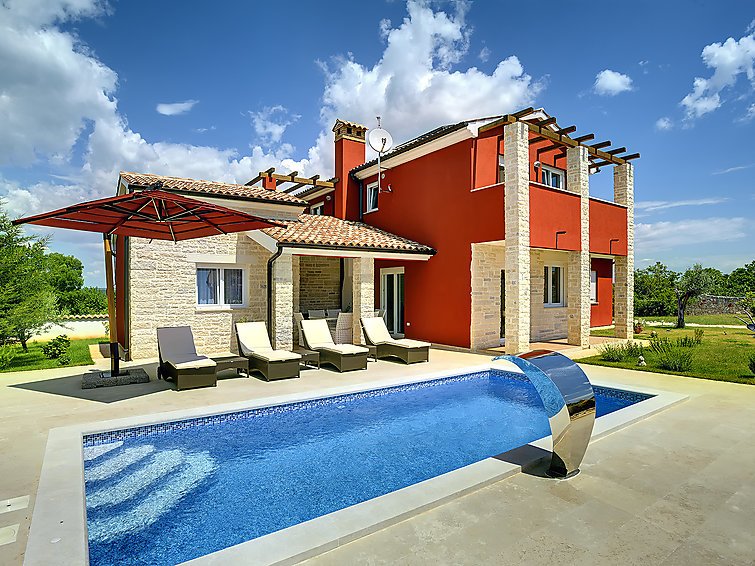 4-huoneen huvila, 195 m2, 2 tasossa. Olo/ruokailuhuone, satelliitti TV (litteänäyttö), stereosoitin ja ilmastointi. Uloskäynti terassille, uima-altaalle. 1 huone, 1 kapea parisänky (160 cm, pituus 210 cm), kylpy/bidet/WC, satelliitti TV ja ilmastointi. Avoin keittiö (uuni, astianpesukone, 4 keraaminen keittotaso, mikroaaltouuni, pakastin, kahvinkeitin). Erillinen WC. Yläkerrassa: 2 huonetta, kaikissa huoneissa, 1 kapea parisänky (160 cm, pituus 210 cm), kylpy/bidet/WC, satelliitti TV ja ilmastointi. Uloskäynti terassille. 1 huone, suihku ja poreamme. Terassi 30 m2 osittain katettu, 2 terassia 6 m2. Terassikalusteita, lepotuoleja. Näkymä uima-altaalle ja maaseudulle. Käytettävissä: tallelokero, lastensänky, hiustenkuivaaja. Internet ( Langaton LAN [WLAN] , ilmainen). 1 pieni lemmikki/koira sallittu…. Lue lisää »