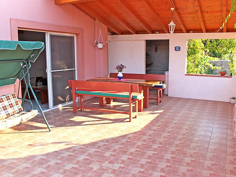 2-huoneen huoneisto, 45 m2, 1. kerroksessa, suunta lounaaseen. Olo/ruokailuhuone, 15 m2, 1 vuodesohva kahdelle (140 cm, pituus 190 cm), satelliitti TV (litteänäyttö), ilmastointi. Uloskäynti terassille. 1 huone, 1 kapea parisänky (160 cm, pituus 200 cm). Avoin keittiö (2 keittolevyä, mikroaaltouuni, pakastin, kahvinkeitin). Suihku/WC. Terassi 2 m2, katettu. Terassikalusteita. Käytettävissä: Internet ( Langaton LAN [WLAN] , ilmainen). 1 lemmikki/koira sallittu…. Lue lisää »