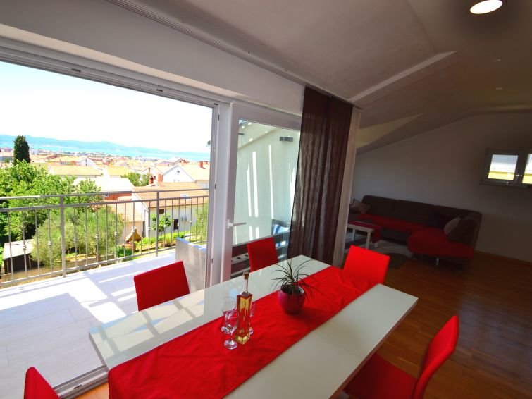 4-huoneen paritalohuoneisto, 100 m2, 2 tasossa, suunta lounaaseen. 1 huone, 1 kapea parisänky (180 cm, pituus 200 cm), kylpy/WC. 1 huone, 2 vuodetta (90 cm, pituus 200 cm). Uloskäynti terassille. 1 huone, 1 x 2 kerrossänky (90 cm, pituus 200 cm). Suihku/WC. Yläkerrassa: olo/ruokailuhuone, 40 m2, jossa viisto katto, kattokorkeus 170 – 220 cm, satelliitti TV (litteänäyttö), ilmastointi. Uloskäynti terassille. Jossa viisto katto, avoin keittiö (4 keittolevyä, uuni, astianpesukone, pakastin), kattokorkeus 170 – 220 cm. Erillinen WC. Terassi 4 m2, katettu, terassi 10 m2. Terassikalusteita, puutarhagrilli (liikuteltava). Etäinen näkymä merelle ja kaupunki. Käytettävissä: hiustenkuivaaja. Internet ( Langaton LAN [WLAN] , ilmainen)…. Lue lisää »
