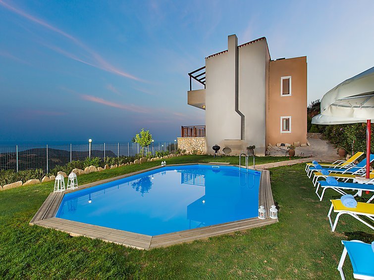”Dimitris”, 4-huoneen huvila, 140 m2, 2 tasossa. Avara ja vaalea, maalaistyylisesti ja paljon puuta sisustettu: olo/ruokailuhuone, avotakka, TV ja ilmastointi. Uloskäynti puutarhaan, uima-altaalle. 1 kahden hengen huone, 2 vuodetta. Keittiö (4 keittolevyä, uuni), ruokapöytä. Kylpyhuone, kylpy/suihku/WC. Yläkerrassa: 1 kahden hengen huone, 1 parisänky. 1 kahden hengen huone, 2 vuodetta. Mukava maalaistyylinen kalustus. Lepotuoleja. Erittäin kaunis panoraamanäkymä vuorille, uima-altaalle ja puutarhaan. Käytettävissä: pesukone. Internet ( Langaton LAN [WLAN] ). Pysäköintipaikka. Soveltuu perheille…. Lue lisää »