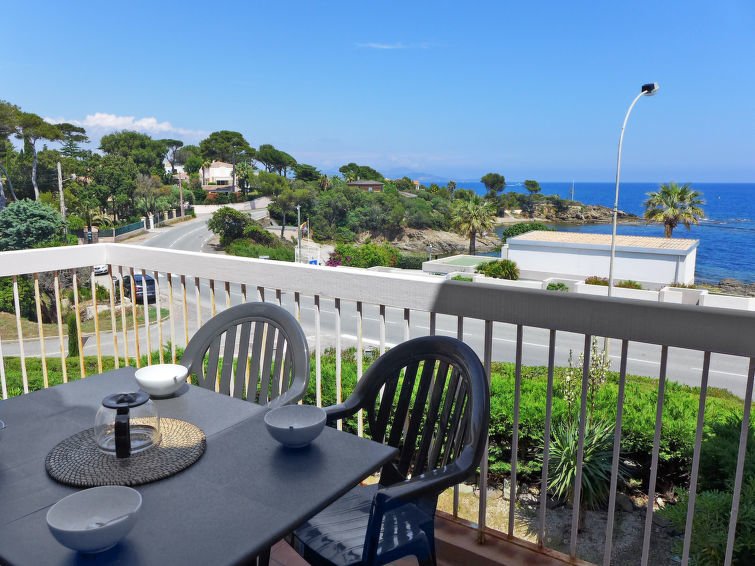 2-huoneen huoneisto, 24 m2, 3. kerroksessa. Olo/ruokailuhuone, 1 vuodesohva kahdelle (140 cm), TV (litteänäyttö), DVD. Uloskäynti parvekkeelle. 1 huone, 1 kapea parisänky (140 cm). Keittiönurkkaus (uuni, 4 keraaminen keittotaso, kahvinkeitin). Kylpy/WC. Sähkölämmitys. Terassikalusteita. Osittainen näkymä merelle. Autotalli. Huomioitavaa: savuton huoneisto…. Lue lisää »