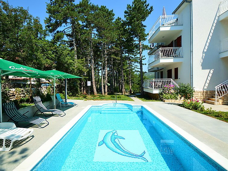 3-huoneen huoneisto, 77 m2, kattokerroksessa. Kauniisti sisustettu: iso olo/ruokailuhuone, 34 m2, 2 vuodesohvaa ja satelliitti TV (litteänäyttö), ilmastointi. Uloskäynti parvekkeelle, terassille. 2 kahden hengen huonetta. Avoin keittiö (4 keittolevyä, pakastin). Kylpy/bidet/WC. Ilmastointilaite (lisämaksu). Parveke 4 m2, terassi 12 m2. Terassikalusteita. Näkymä puutarhaan ja metsään. Käytettävissä: Internet ( Langaton LAN [WLAN] , ilmainen). Pysäköintipaikka n:o 5 (aidattu)…. Lue lisää »