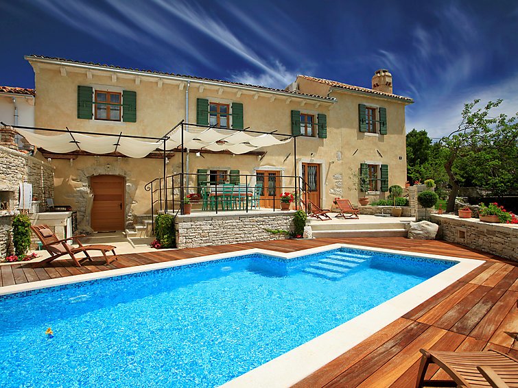 4-huoneen huvila, 140 m2, 2 tasossa. Kauniisti ja maalaistyylisesti sisustettu: olohuone, 20 m2, avotakka, satelliitti TV ja ilmastointi. Ruokailuhuone. Uloskäynti terassille, uima-altaalle. Avoin keittiö (4 keittolevyä, uuni, astianpesukone). Suihku/WC. Yläkerrassa: 1 huone, 1 parisänky (180 cm, pituus 200 cm), ilmastointi. 1 huone, 1 kapea parisänky (160 cm, pituus 200 cm), suihku/WC ja ilmastointi. 1 huone, 2 vuodetta (90 cm, pituus 190 cm). Kylpy/bidet/WC, kaksoispesuallas, poreamme. Lämmitys (lisämaksu). Vähäinen näkymä merelle. Käytettävissä: Internet ( Langaton LAN [WLAN] , ilmainen)…. Lue lisää »