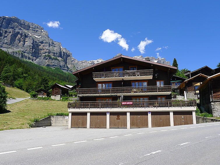 3-huoneen huoneisto 1. kerroksessa. Mukavasti ja viihtyisästi sisustettu: olo/ruokailuhuone, 30 m2, satelliitti TV (litteänäyttö), radio, stereosoitin ja DVD. Uloskäynti terassille. 1 huone, 2 vuodetta. 1 huone, 1 x 2 kerrossänky. Avoin keittiö (3 keittolevyä, uuni, mikroaaltouuni, kahvinkeitin). Kylpy/WC. Iso terassi 24 m2. Terassikalusteita, puutarhagrilli, lepotuoleja. Kaunis näkymä vuorille ja laaksoon. Autotalli. Huomioitavaa: savuton huoneisto. Enintään 1 lemmikki/koira sallittu…. Lue lisää »