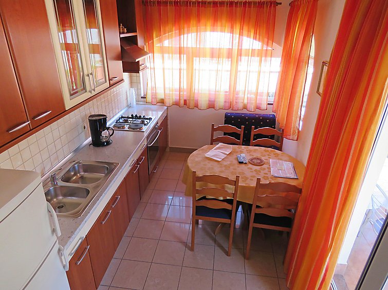 3-huoneen huoneisto, 70 m2, 1. kerroksessa, suunta lounaaseen. Olo/ruokailuhuone, 20 m2, satelliitti TV (litteänäyttö), ilmastointi. Uloskäynti terassille. 1 huone, 1 kapea parisänky (160 cm, pituus 200 cm). 1 huone, 1 vuode (90 cm, pituus 200 cm), 1 kapea parisänky (160 cm, pituus 200 cm), suihku/WC. Avoin keittiö (4 keittolevyä, uuni, pakastin, kahvinkeitin). Suihku/WC. Terassi 8 m2, katettu. Terassikalusteita. Käytettävissä: Internet ( Langaton LAN [WLAN] , ilmainen)…. Lue lisää »