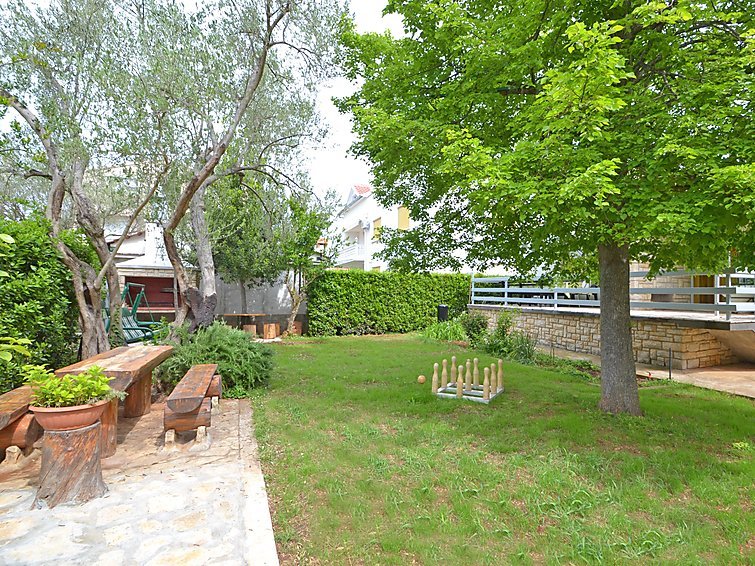 5-huoneen talo, 200 m2, 3 tasossa, suunta lounaaseen. Olo/ruokailuhuone, 45 m2, 2 vuodesohvaa ja satelliitti TV (litteänäyttö), ilmastointi. Uloskäynti terassille. Avoin keittiö (4 keittolevyä, uuni, astianpesukone, mikroaaltouuni, pakastin). Erillinen WC. Alemmassa kerroksessa: 1 huone, 1 parisänky (2 x 80 cm, pituus 200 cm), TV. Kylpy/WC. Yläkerrassa: 1 huone, 1 kapea parisänky (160 cm, pituus 200 cm), satelliitti TV ja ilmastointi. Uloskäynti terassille. 1 huone, 1 parisänky (2 x 90 cm, pituus 200 cm), TV ja ilmastointi. Uloskäynti terassille. Kylpy/WC. 2. kerroksessa: 1 huone, 1 kapea parisänky (160 cm, pituus 200 cm), satelliitti TV ja ilmastointi. Uloskäynti terassille. Ruokailuhuone. Keittiö (4 keittolevyä, uuni, pakastin, kahvinkeitin). Erillinen WC. 2 terassia 27 m2, terassi 5 m2. Terassikalusteita. Käytettävissä: Internet ( Langaton LAN [WLAN] , ilmainen)…. Lue lisää »