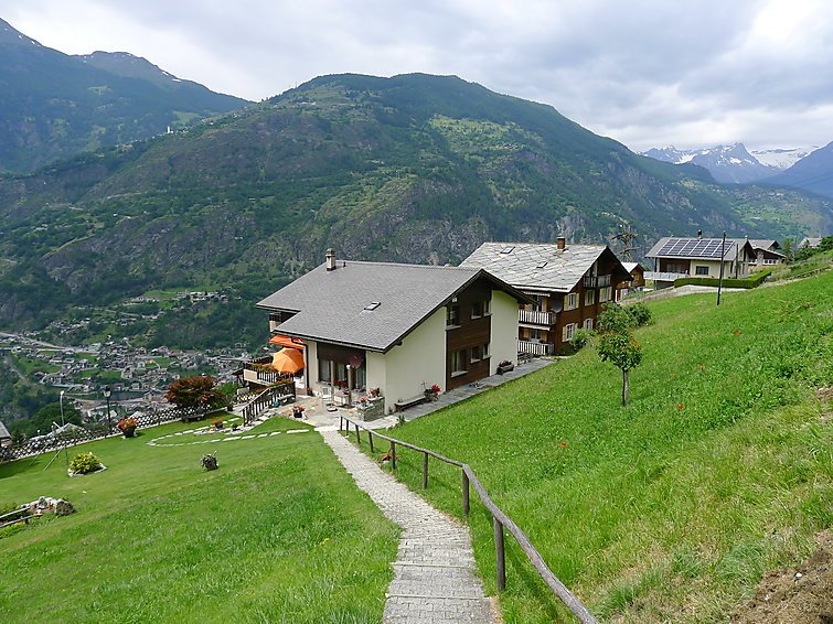 4-huoneen huoneisto kattokerroksessa. Yksinkertaisesti ja viihtyisästi sisustettu: olohuone, satelliitti TV (litteänäyttö). Uloskäynti parvekkeelle. 2 kahden hengen huonetta. 1 pieni huone, 1 vuode. Keittiö (4 keittolevyä, uuni, fonduesetti (liha, juusto)), ruokapöytä. Suihku/WC. Parveke 10 m2. Parvekekalusteita. Ihastuttava panoraamanäkymä vuorille, laaksoon, maaseudulle ja paikkakunnalle. Käytettävissä: Internet ( Langaton LAN [WLAN] , ilmainen). Pysäköintipaikka, 30 m…. Lue lisää »