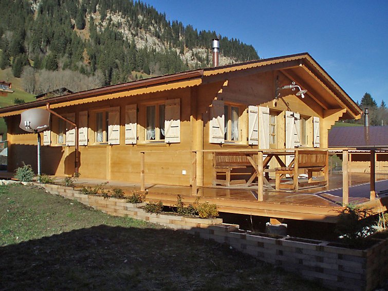 3-huoneen chalet, 70 m2. Avara, uudenaikaisesti ja paljon puuta sisustettu: avoin olo/ruokailuhuone, takkakamiina ja satelliitti TV (litteänäyttö), radio ja DVD. Uloskäynti terassille. 1 huone, 2 kerrossänky (90 cm, pituus 200 cm), 2 kapeaa parisänkyä (140 cm, pituus 200 cm). 1 huone, 1 parisänky (160 cm, pituus 200 cm). Avoin keittiö (uuni, astianpesukone, 4 keraaminen keittotaso, pakastin, grilli, kahvinkeitin, saarekekeittiö), ruokapöytä. Suihku/WC. Lattialämmitys. Iso terassi 50 m2, terassi 20 m2. Terassikalusteita, lepotuoleja, varasto. Ihastuttava näkymä vuorille ja maaseudulle. Käytettävissä: puut (ilmainen). Pysäköintipaikka n:o 17. Soveltuu perheille. 1 lemmikki/koira sallittu. Iso suihku 1m x 1.6m (sadevesisuihku)…. Lue lisää »