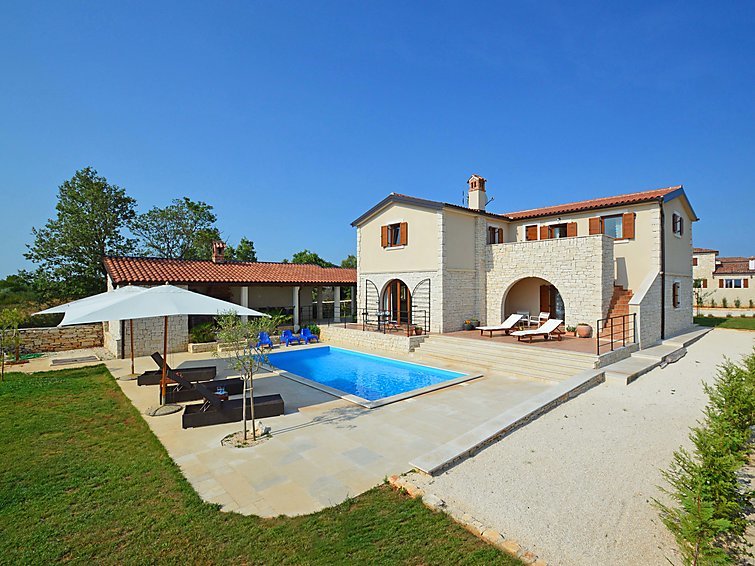 5-huoneen huvila, 200 m2, 2 tasossa. Olo/ruokailuhuone, avotakka ja satelliitti TV (litteänäyttö), ilmastointi. Uloskäynti terassille. 1 huone, 1 parisänky (2 x 90 cm, pituus 200 cm), kylpy/WC ja ilmastointi. Uloskäynti terassille. Avoin keittiö (uuni, astianpesukone, 4 keraaminen keittotaso, mikroaaltouuni, pakastin). Erillinen WC. Yläkerrassa: 1 huone 25 m2, 1 parisänky (2 x 90 cm, pituus 200 cm), suihku/WC ja ilmastointi. Uloskäynti terassille. 1 huone, 1 vuode (90 cm, pituus 200 cm), suihku/WC ja ilmastointi. Uloskäynti terassille. 1 huone, 1 vuode (90 cm, pituus 200 cm), suihku/WC ja ilmastointi. Terassi 20 m2, katettu, 2 terassia 10 m2. Terassikalusteita, lepotuoleja. Näkymä uima-altaalle. Käytettävissä: lastensänky. Internet ( Langaton LAN [WLAN] , ilmainen). 1 lemmikki/koira sallittu…. Lue lisää »