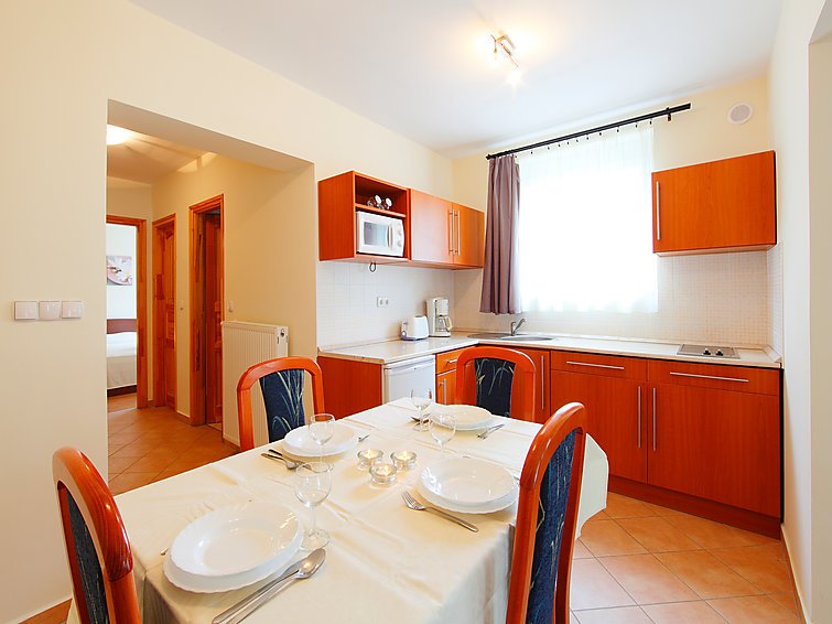 2-huoneen huoneisto, 50 m2, sisääntulokerroksessa, mukavasti sisustettu: olo/makuuhuone, 1 vuodesohva kahdelle ja satelliitti TV. Uloskäynti terassille. 1 huone, 1 kapea parisänky. Avoin keittiö (2 keittolevyä, mikroaaltouuni), ruokapöytä. Kylpyhuone, erillinen WC. Pieni terassi. Terassikalusteita. Pysäköintipaikka talon vieressä. 1 lemmikki/koira sallittu…. Lue lisää »