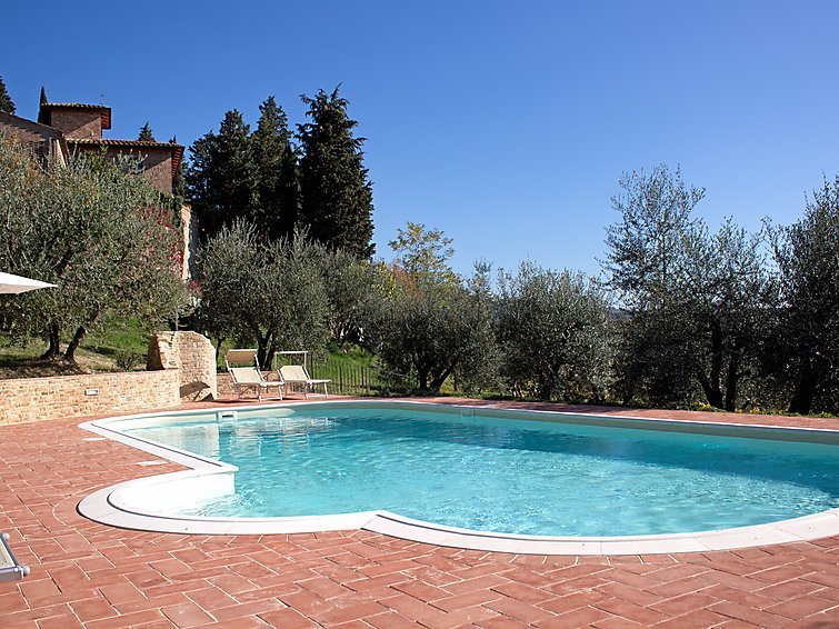 9-huoneen talo 3 tasossa. Erittäin mukavasti ja hyvällä maulla sisustettu: iso olo/ruokailuhuone, satelliitti TV. Uloskäynti puutarhaan, loggialle. Salonki, avotakka. Suuri keittiö (uuni, astianpesukone, 4 keraaminen keittotaso, mikroaaltouuni, kahvinkeitin). Uloskäynti terassille. Suihku/WC, kaksoispesuallas. Yläkerrassa: avoin olohuone, 1 vuodesohva kahdelle ja satelliitti TV. 3 kahden hengen huonetta. 2 huonetta, kaikissa huoneissa 2 vuodetta. 5 suihkua/WC:tä (yksityinen). Kattokerroksessa: (kierreportaat) pieni, yksiö, panoraamaikkuna. Luonnonkivilattiat. 2 isoa terassia, iso puutarhaistumapaikka. Puutarhagrilli, loggia (katos). Ihastuttava panoraamanäkymä maaseudulle. 1 lemmikki/koira sallittu…. Lue lisää »