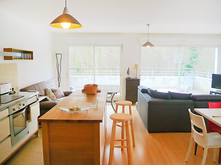 3-huoneen huoneisto, 75 m2. Vaalea, kauniisti ja hyvällä maulla sisustettu: olo/ruokailuhuone, 35 m2, ruokapöytä ja TV (litteänäyttö). Uloskäynti terassille. 1 huone, 1 kapea parisänky (1 x 160 cm). 1 huone, 2 vuodetta (90 cm). Avoin keittiö (3 keittolevyä, uuni, astianpesukone, mikroaaltouuni, pakastin, kahvinkeitin), baari. Kylpyhuone, kylpy/suihku, erillinen WC. Sähkölämmitys. Iso terassi 16 m2, etelään ja, itään. Terassikalusteita, lepotuoleja. Käytettävissä: pesukone. Pysäköintipaikka (katettu)…. Lue lisää »
