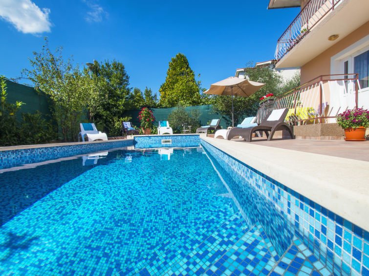 3-huoneen talo, 45 m2, suunta etelään. Olo/ruokailuhuone, satelliitti TV (litteänäyttö), ilmastointi. Uloskäynti terassille. 1 huone, 2 vuodetta (90 cm, pituus 200 cm). 1 huone, 1 parisänky (2 x 90 cm, pituus 200 cm). Avoin keittiö (4 keittolevyä, uuni, pakastin, kahvinkeitin). Suihku/WC. Terassi 28 m2, katettu. Terassikalusteita. Näkymä merelle. Käytettävissä: Internet ( Langaton LAN [WLAN] , ilmainen). 1 lemmikki/koira sallittu…. Lue lisää »