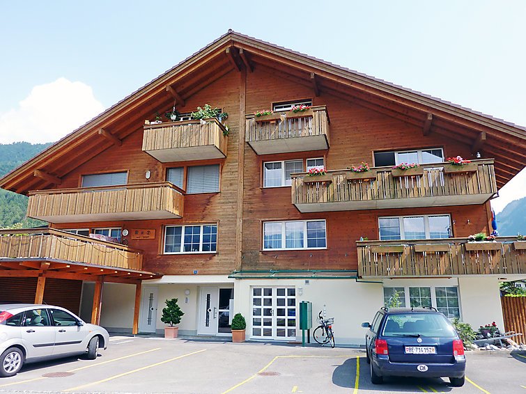 ”Jungfrau”, 3-huoneen huoneisto, 80 m2, 2. kerroksessa, suunta lounaaseen. Avara, osittain viistot katot, uudenaikaisesti ja hyvällä maulla sisustettu: avoin olo/ruokailuhuone, 1 vuodesohva (120 cm, pituus 200 cm), takkakamiina, ruokapöytä, kaapeli TV, kansainvälisiä TV-kanavia, litteänäyttö, stereosoitin ja DVD. Uloskäynti parvekkeelle. 1 huone 18 m2, kattoikkuna, 1 parisänky (2 x 90 cm, pituus 200 cm), sähkökäyttöinen ulkokaihdin. 1 huone 12 m2, 1 parisänky (2 x 90 cm, pituus 200 cm). Avoin keittiö (uuni, astianpesukone, 4 keraaminen keittotaso, mikroaaltouuni, kahvinkeitin). Kylpy/suihku/WC, kulma-amme. Parveke 11 m2, lounaaseen. Parvekekalusteita. Kaunis näkymä vuorille ja paikkakunnalle. Käytettävissä: silitysrauta, hiustenkuivaaja, puut (lisämaksu). Internet ( Langaton LAN [WLAN] , ilmainen). Pysäköintipaikka (katettu) talon vieressä. Huomioitavaa: savuton huoneisto…. Lue lisää »