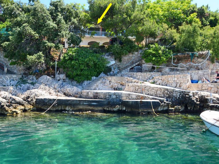 3-huoneen talo, 80 m2, 3 tasossa, suunta etelään. Olo/ruokailuhuone, 1 vuodesohva kahdelle ja satelliitti TV (litteänäyttö). Uloskäynti terassille. Avoin keittiö (2 keraaminen keittotaso, mikroaaltouuni, pakastin, kahvinkeitin). Suihku/WC. Alemmassa kerroksessa: (ulkoportaat) 1 huone, 1 parisänky (2 x 90 cm, pituus 200 cm), suihku/WC ja satelliitti TV (litteänäyttö), ilmastointi. Yläkerrassa: 1 huone, jossa viisto katto, kattokorkeus 100 – 230 cm, 1 parisänky (2 x 90 cm, pituus 200 cm), suihku/WC ja satelliitti TV (litteänäyttö), ilmastointi. Ilmastointilaite (lisämaksu). Terassi 30 m2, katettu. Terassikalusteita, lepotuoleja. Ihastuttava näkymä merelle. Käytettävissä: lastensänky. Internet ( Langaton LAN [WLAN] , ilmainen). 1 pieni lemmikki/koira sallittu…. Lue lisää »