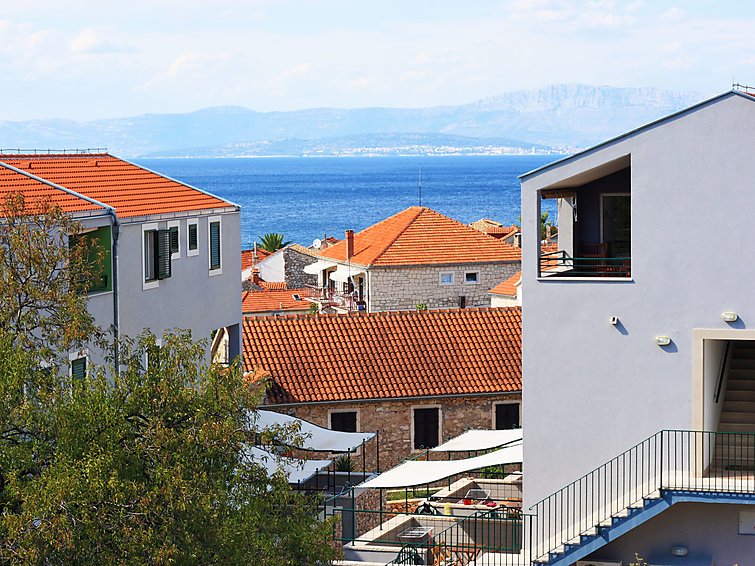 3-huoneen huoneisto, 45 m2, 2. kerroksessa, suunta etelään. Olo/ruokailuhuone, 1 ulosvedettävä sänky (pituus 200 cm), satelliitti TV ja ilmastointi. Uloskäynti terassille. 1 huone, 1 parisänky (2 x 80 cm, pituus 200 cm). 1 huone, 2 vuodetta (80 cm, pituus 200 cm). Avoin keittiö (4 keittolevyä, uuni, pakastin). Suihku/WC. Terassi 9 m2, katettu. Terassikalusteita. Vähäinen näkymä merelle. Käytettävissä: Internet ( Langaton LAN [WLAN] , ilmainen). 1 pieni lemmikki/koira sallittu…. Lue lisää »