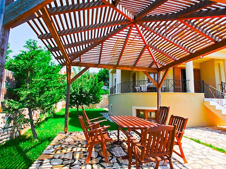 ”Kefalonia Sun Villas 2”, 3-huoneen huvila 2 tasossa. Avara ja vaalea, mukavasti ja tyylikkäästi sisustettu: olohuone, 2 vuodesohvaa, avotakka ja satelliitti TV (litteänäyttö), ilmastointi. Uloskäynti puutarhaan, uima-altaalle. 1 kahden hengen huone, 2 vuodetta ja ilmastointi. Keittiö/oleskelutila (4 keittolevyä, uuni, astianpesukone, mikroaaltouuni, pakastin, kahvinkeitin), ruokapöytä. Kylpy/WC. Yläkerrassa: 1 kahden hengen huone, 1 parisänky, kylpyhuone ja hierova suihku (yksityinen) ilmastointi. Uloskäynti parvekkeelle. 1 kahden hengen huone, 2 vuodetta, kylpyhuone ja ilmastointi. Parveke, puutarhaistumapaikka, puutarha. Terassikalusteita, parvekekalusteita, puutarhagrilli, lepotuoleja. Ihastuttava panoraamanäkymä merelle, uima-altaalle, puutarhaan ja maaseudulle. Käytettävissä: pesukone, puhelin, syöttötuoli, hiustenkuivaaja. Internet ( Langaton LAN [WLAN] ). Autotalli. Soveltuu perheille…. Lue lisää »