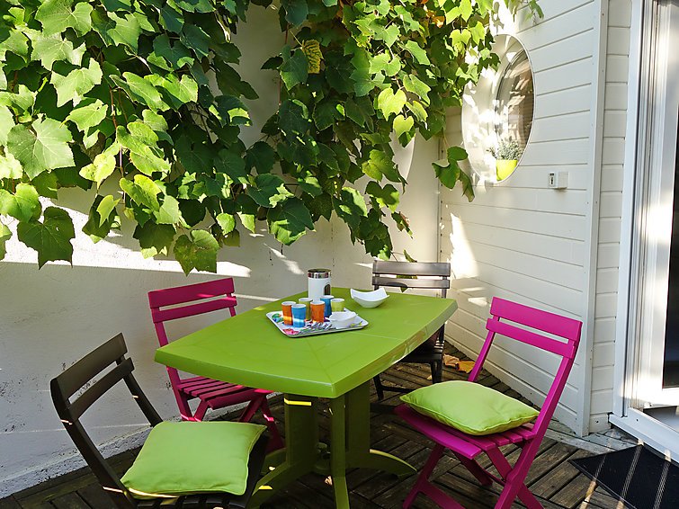 2-huoneen talo, 45 m2, 2 tasossa. Kauniisti sisustettu: olo/ruokailuhuone, TV ja DVD. Uloskäynti terassille. 1 huone, 1 kapea parisänky (140 cm). Avoin keittiö (4 keittolevyä, uuni, astianpesukone, mikroaaltouuni), radio. Suihku, erillinen WC. Yläkerrassa: (kierreportaat) parvi, 1 vuodesohva kahdelle. Sähkölämmitys. Pieni terassi, kaakkoon. Terassikalusteita, puutarhagrilli. Käytettävissä: pesukone, silitysrauta, lastensänky alle 2 vuotiaalle. Enintään 1 lemmikki/koira sallittu…. Lue lisää »