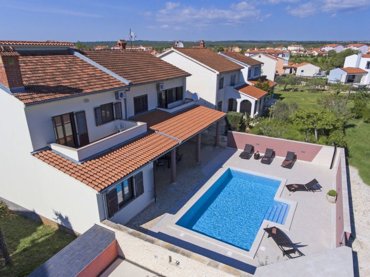 5-huoneen paritalohuoneisto, 170 m2, 2 tasossa. Olo/ruokailuhuone, satelliitti TV (litteänäyttö), ilmastointi. Uloskäynti terassille. 1 huone, 1 kapea parisänky (160 cm, pituus 200 cm). Keittiö (4 keittolevyä, uuni, astianpesukone, pakastin). Suihku/WC. Yläkerrassa: 1 huone, 1 parisänky (2 x 90 cm, pituus 200 cm). 1 huone, 1 parisänky (2 x 90 cm, pituus 200 cm), ilmastointi. Uloskäynti terassille. 1 huone, 1 parisänky (2 x 80 cm, pituus 200 cm). Suihku/bidet/WC. Terassi 60 m2, katettu, terassi 8 m2. Terassikalusteita, puutarhagrilli (liikuteltava), lepotuoleja. Näkymä uima-altaalle ja puutarhaan. Käytettävissä: Internet ( Langaton LAN [WLAN] , ilmainen)…. Lue lisää »