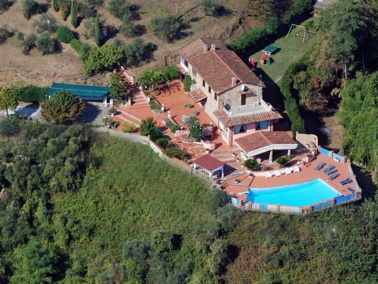 ”La Chiazza”, 7-huoneen huvila, 250 m2, 2 tasossa. Avara ja vaalea, mukavasti ja viihtyisästi sisustettu: iso olo/ruokailuhuone, avotakka, baari ja TV. Uloskäynti terassille. Ruokailuhuone, avotakka. Leikkihuone. Uloskäynti uima-altaalle. Suuri keittiö (uuni, astianpesukone, mikroaaltouuni, pakastin, kahvinkeitin), ruokapöytä. Suihku/bidet/WC. Yläkerrassa: 1 kahden hengen huone, ilmastointi. Iso läpikulkuhuone, 2 vuodetta ja ilmastointi. 1 kahden hengen huone 14 m2, ilmastointi. 1 kahden hengen huone, suihku/bidet/WC ja ilmastointi. Uloskäynti verannalle. Suihku/bidet/WC. Iso terassi 30 m2, iso puutarhaistumapaikka, iso puutarha. Terassikalusteita, puutarhagrilli. Ihastuttava panoraamanäkymä merelle, vuorille ja laaksoon. Käytettävissä: pesukone, tallelokero, silitysrauta, hyttysverkko, lastensänky alle 2 vuotiaalle. Internet ( Langaton LAN [WLAN] , ilmainen). 2 lemmikkiä/koiraa sallittu…. Lue lisää »