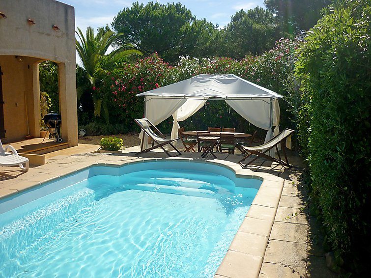5-huoneen huvila, 140 m2, 4 tasossa. Iso olohuone, avotakka, TV, kansainvälisiä TV-kanavia, litteänäyttö, stereosoitin ja DVD. Uloskäynti terassille, uima-altaalle. Suuri keittiö (uuni, astianpesukone, 3 keraaminen keittotaso, mikroaaltouuni, pakastin, kahvinkeitin). Uloskäynti terassille. Alemmassa kerroksessa: 1 huone, 2 vuodetta (90 cm, pituus 200 cm). Yläkerrassa: 1 huone, 1 kapea parisänky (160 cm, pituus 200 cm), TV. 1 huone, 1 kapea parisänky (160 cm, pituus 200 cm). 2 kylpyhuonetta, suihku/WC. 2. kerroksessa: 1 huone, 2 vuodetta (90 cm, pituus 200 cm). Uloskäynti terassille, suunta etelään. Terassi 60 m2 osittain katettu, etelään, pieni terassi 10 m2, etelään. Terassikalusteita, lepotuoleja (6). Käytettävissä: pesukone, silitysrauta. Internet ( Langaton LAN [WLAN] ). Huomioitavaa: savuton talo. Savuhälytin…. Lue lisää »
