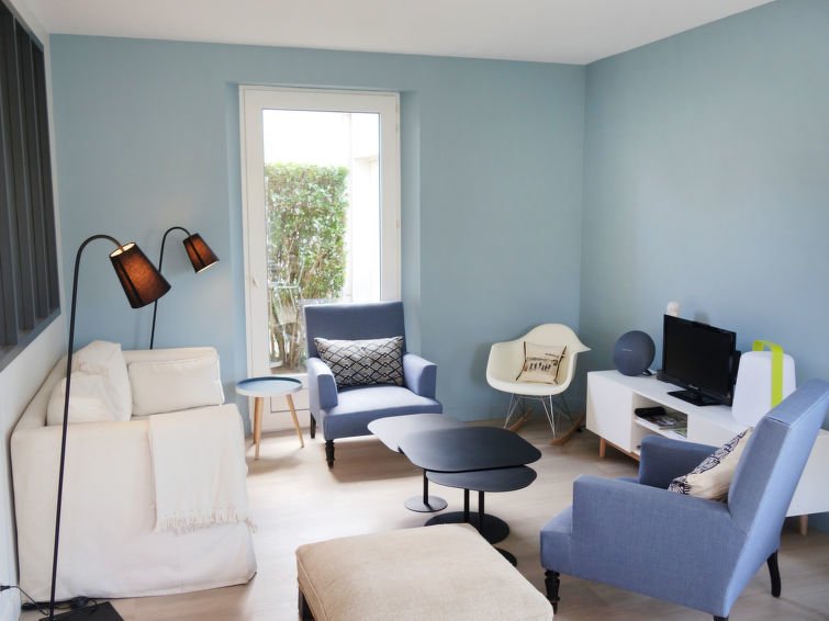 5-huoneen rivitalo, 115 m2, 2 tasossa. Peruskorjattu vuonna 2017, mukavasti ja kauniisti sisustettu: olo/ruokailuhuone, TV (litteänäyttö), DVD. Uloskäynti terassille. Avoin keittiö (uuni, astianpesukone, 3 keraaminen keittotaso, mikroaaltouuni, pakastin). Suihku, erillinen WC. Yläkerrassa: 2 huonetta, kaikissa huoneissa, 1 kapea parisänky (1 x 140 cm, pituus 190 cm). 1 huone, 1 vuodesohva kahdelle (1 x 140 cm, pituus 190 cm). 1 huone, 3 vuodetta (90 cm, pituus 190 cm). Kylpyhuone, erillinen WC. Vähäinen näkymä merelle. Käytettävissä: pesukone, kuivausrumpu. Internet ( Langaton LAN [WLAN] , ilmainen). Pysäköintipaikka talon vieressä. Huomioitavaa: savuton talo…. Lue lisää »