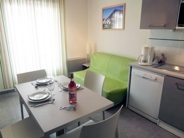 2-huoneen huoneisto, 22 m2. Mukavasti sisustettu: olo/ruokailuhuone, 1 vuodesohva kahdelle (140 cm), TV (litteänäyttö). Uloskäynti terassille. 1 huone, 1 kapea parisänky (160 cm). Keittiönurkkaus (4 keittolevyä, astianpesukone, mikroaaltouuni, grilli, kahvinkeitin). Suihku/WC. Käytettävissä: pesukone, syöttötuoli, lastensänky alle 2 vuotiaalle (lisämaksu). Pysäköintipaikka…. Lue lisää »